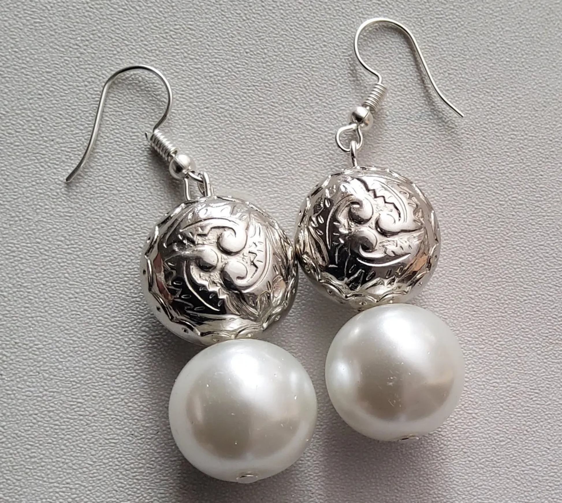 Add a touch of class to any outfit with the Classy Lady Earrings. Made with silver and pearl, these earrings exude elegance and sophistication. Perfect for any occasion, these earrings will elevate your style and make you stand out in a crowd. (Class up your look with these Silver and Pearl earrings. Always be the classiest lady in the room.)