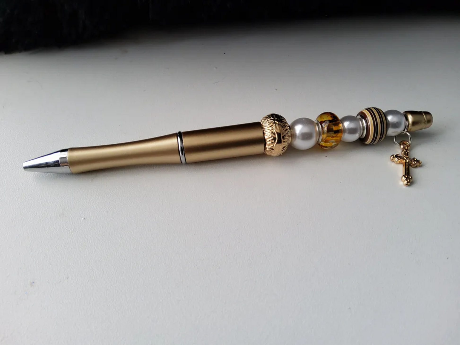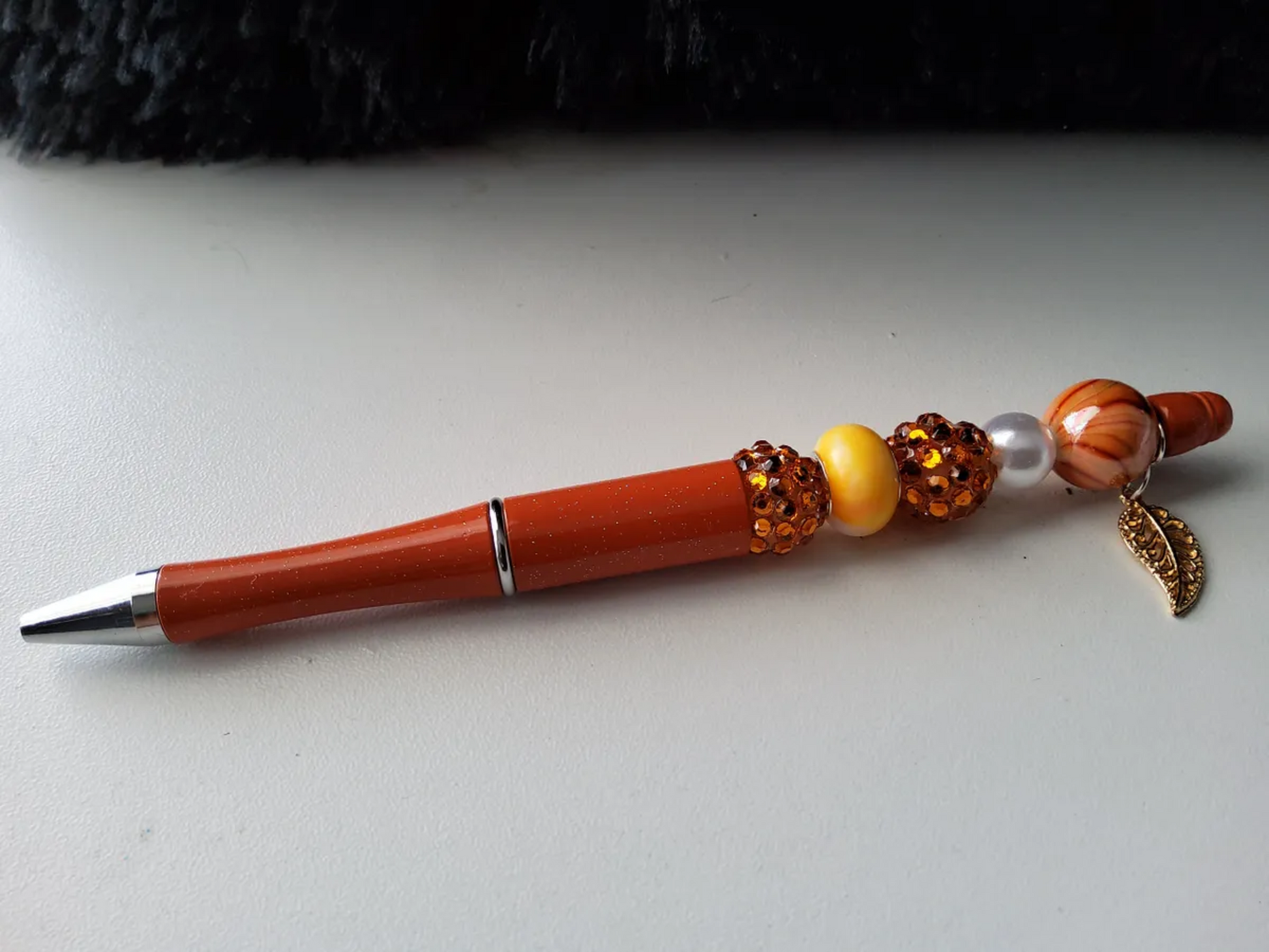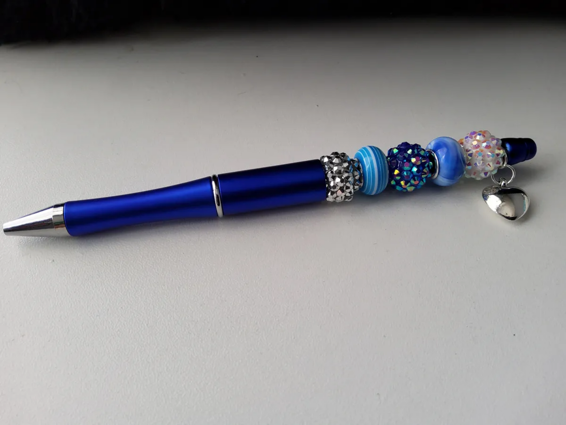 "Add a touch of style to your writing with our Handmade Beaded Pens! Each pen features black ink and a unique, flashy design for a one-of-a-kind writing experience. Perfect for anyone looking to stand out with their writing! (Pun intended.)"