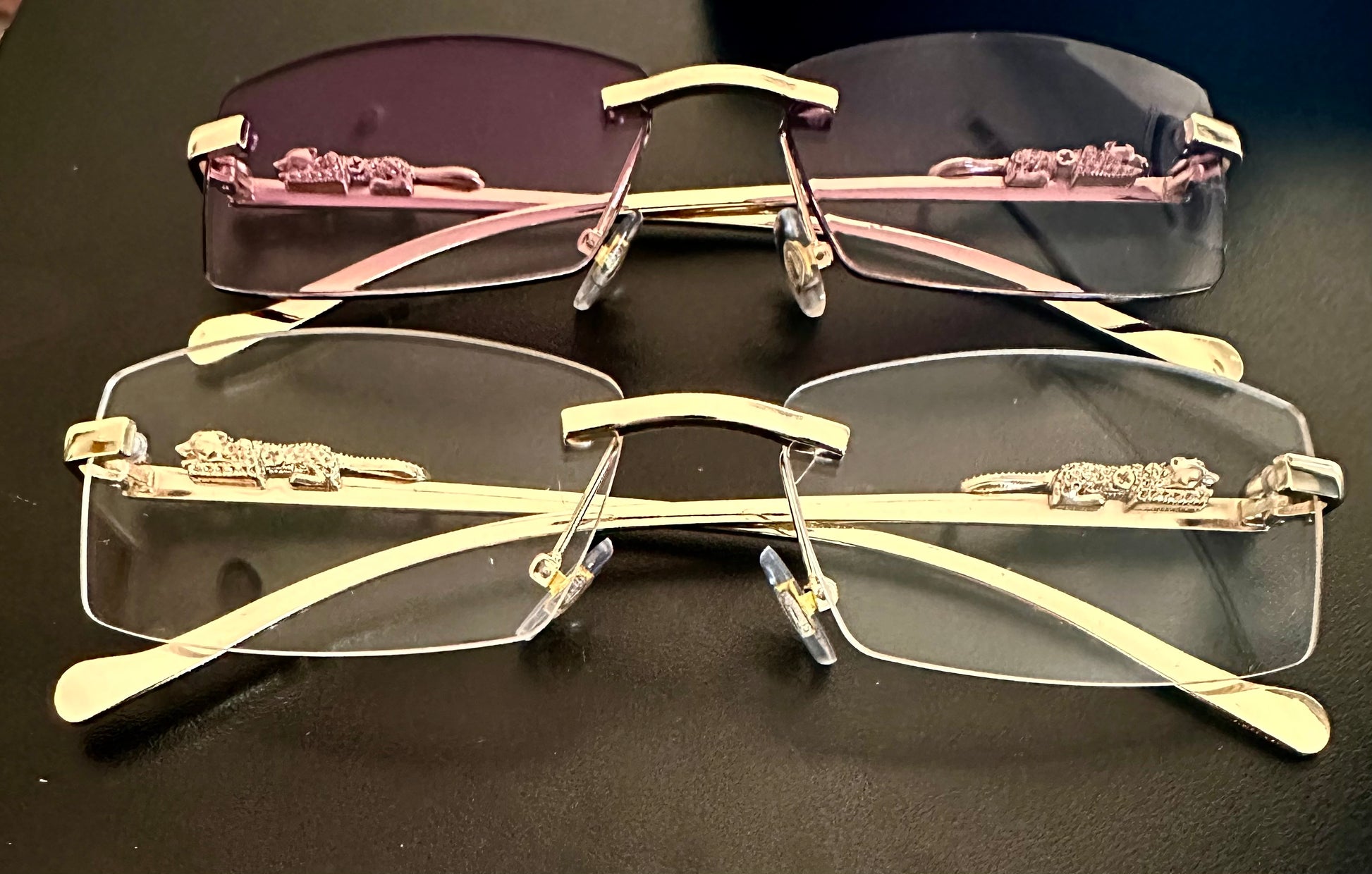 Unleash your inner feline with Men's Jaguar Sunglasses! These shades are the star of any cookout, available in purple or clear with gold accents and a sleek Jaguar emblem on the side. Look stylish while protecting your eyes from the sun - no compromises necessary.