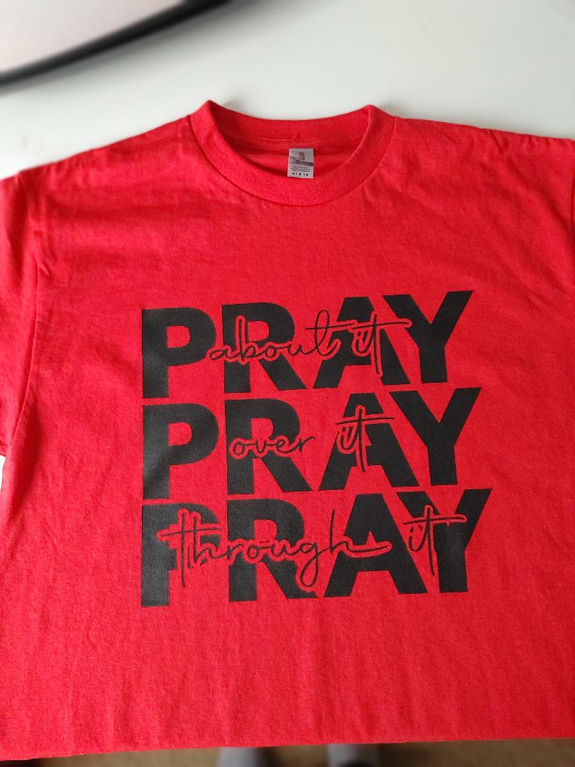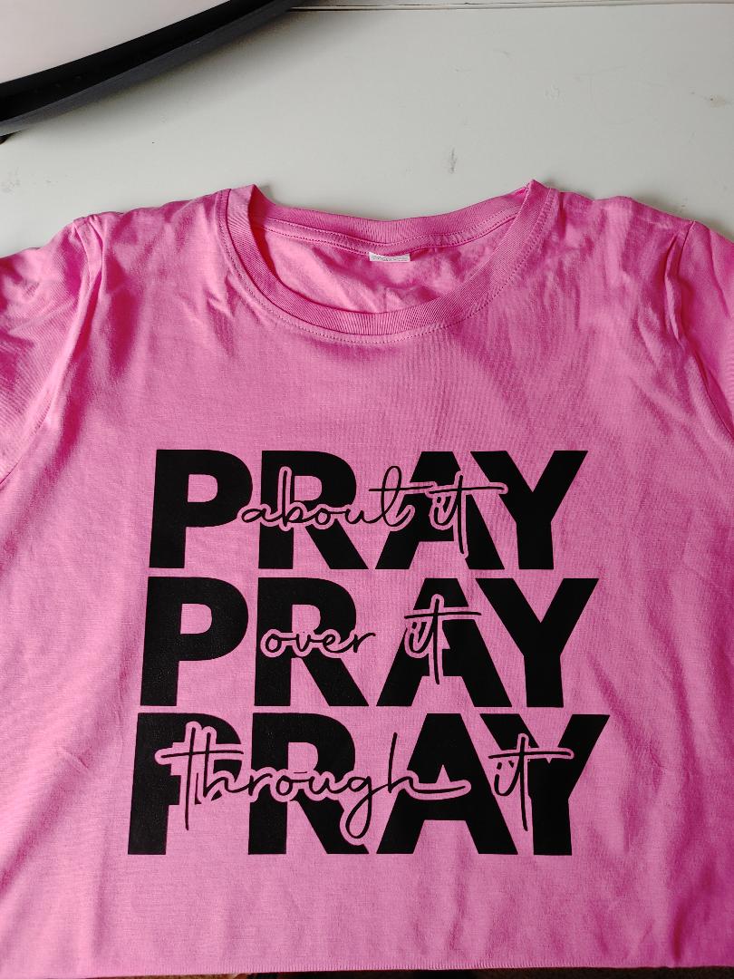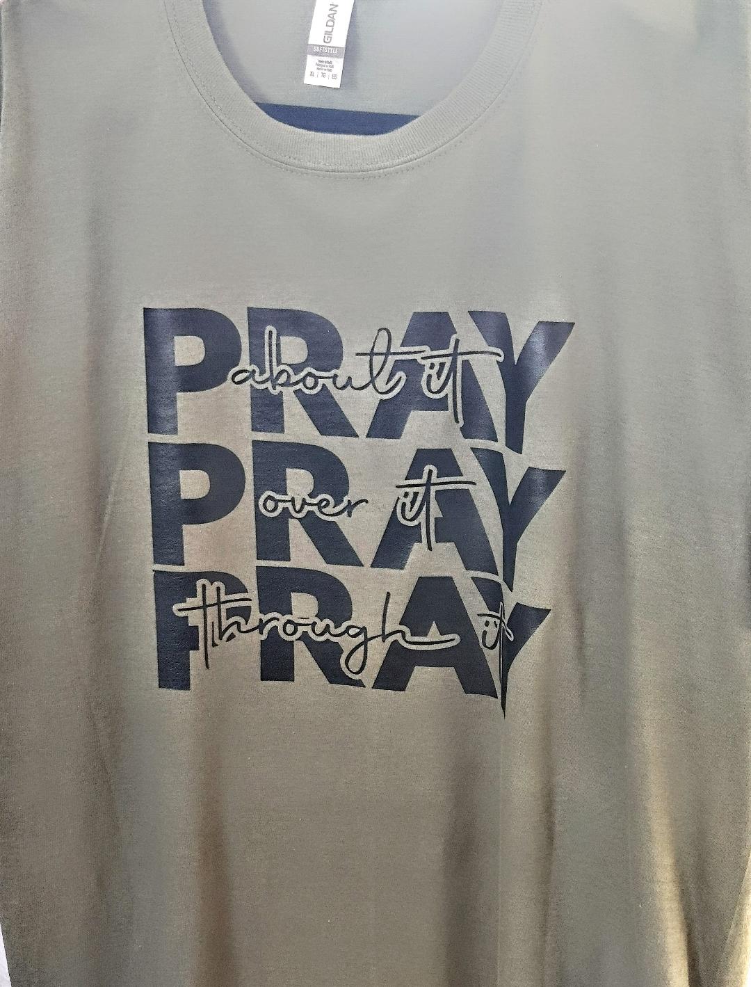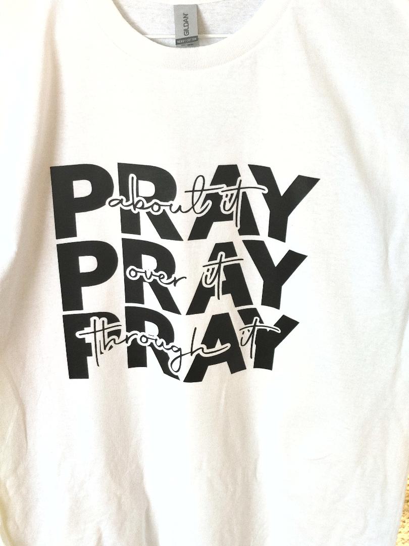 Pray About It T-Shirt, White L, Pink 2XL petite, Olive Green XL